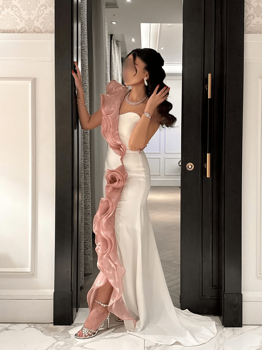 فستان ناعم من قماش الساتان الوردي بتصميم جذّاب يبرز جمال القوام وأناقة التفاصيل. يتميز بلمعة فاخرة ولمسات رقيقة عند الصدر والخصر، مما يمنحك إطلالة راقية تناسب حفلات المساء والمناسبات الخاصة.